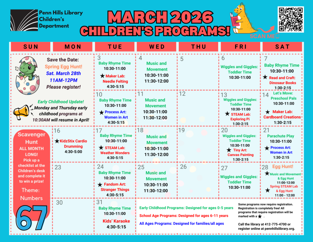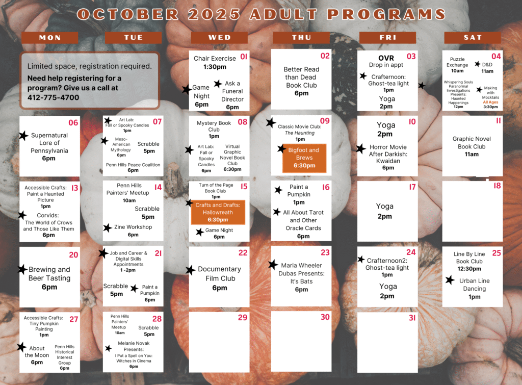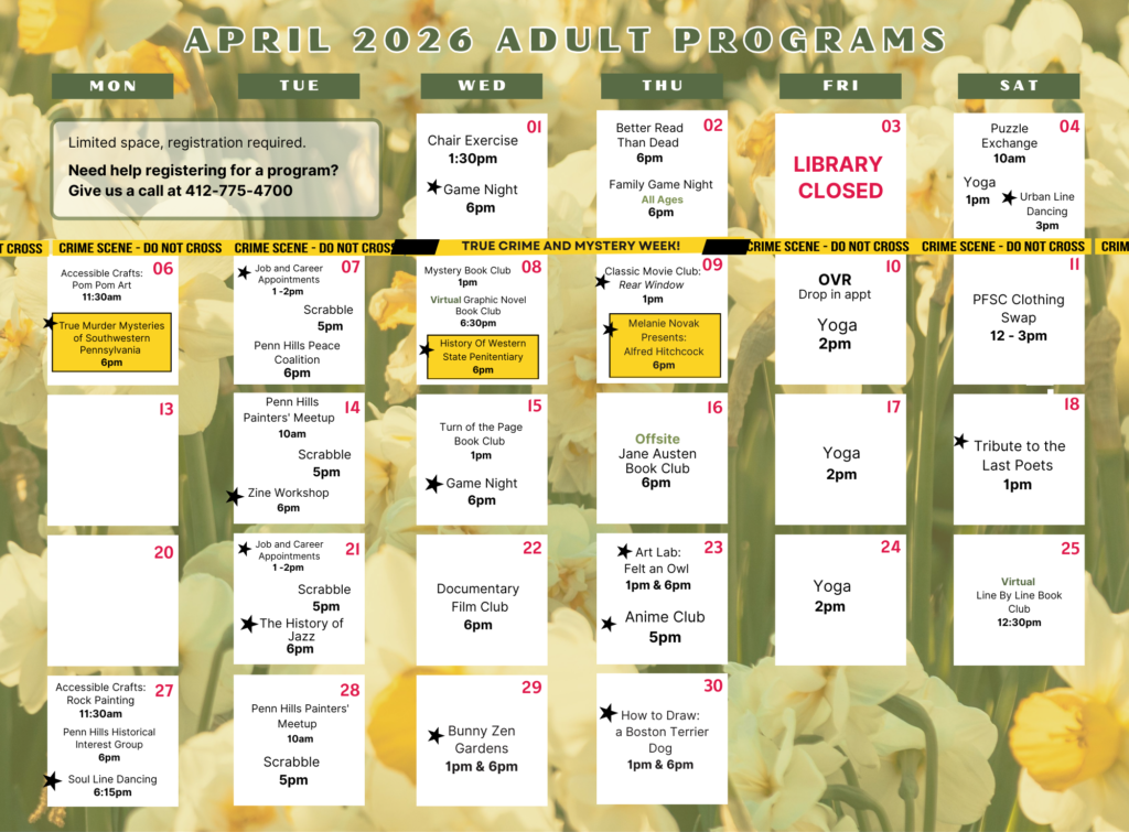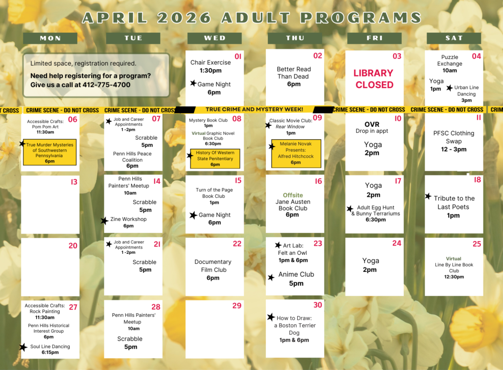 Most programs do not require registration, unless otherwise noted on the calendar. To register for a program, visit the Events List page or call us at 412-775-4700.