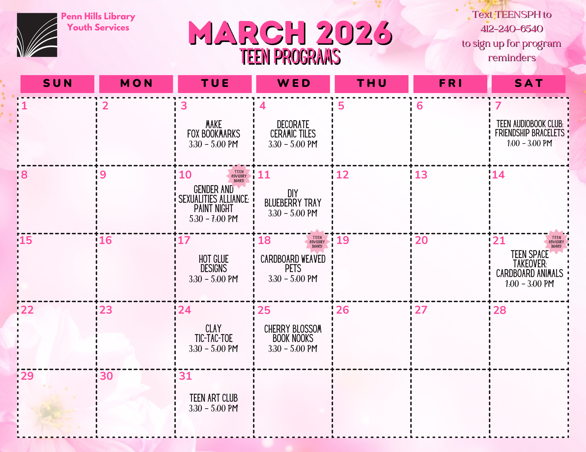 Physical copies of all program calendars are available in the library.